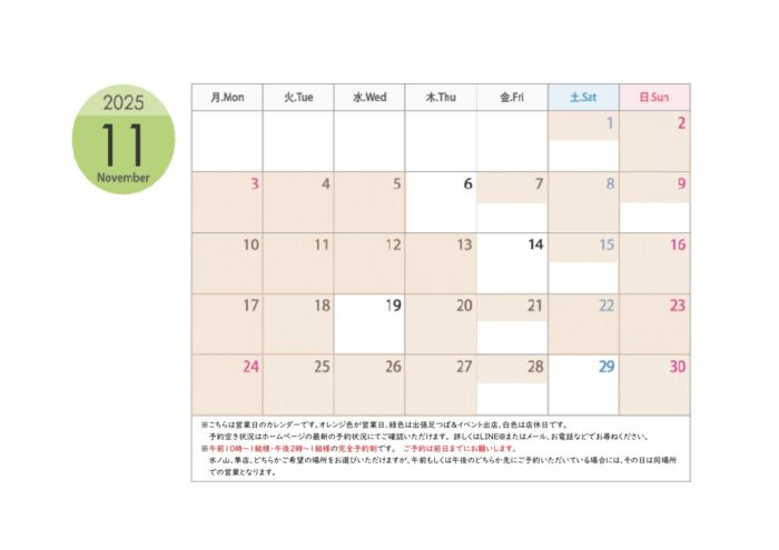 ※ご予約後にメニュー変更(よもぎ蒸しから脚蒸しに変更等)が発生した場合には、なるべくお早めにご連絡ください。